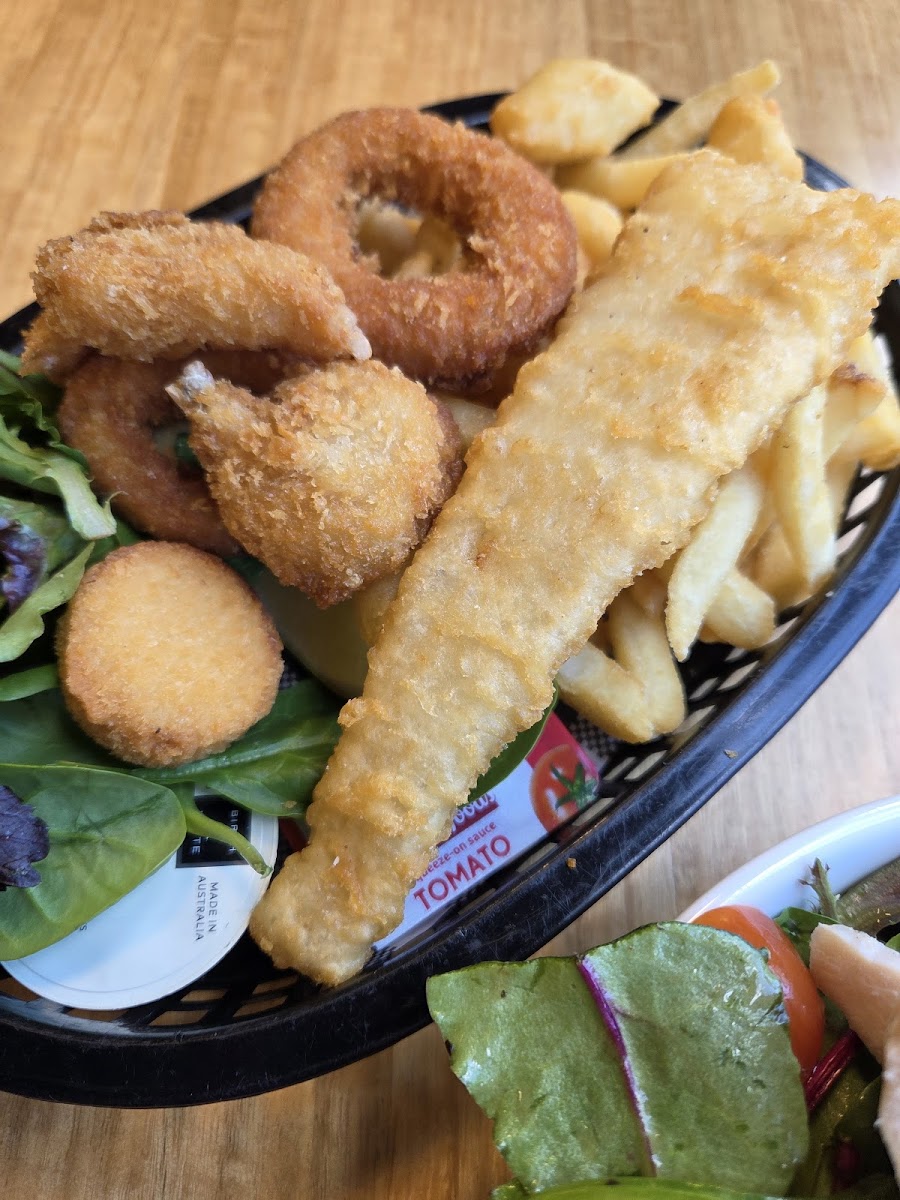 On the menu, Lakeside Railway Café offers hearty, familiar fare geared towards comfort and quick satisfaction rather than fine dining. Popular choices include classic fish and chips, a chicken schnitzel sandwich with cheese and tomato, and a variety of burgers including vegetarian options like the Beyond Veggie Burger. For those wanting something sweet, homemade scones and seasonal pies provide a comforting finish, often enjoyed alongside a quick coffee or a cold drink.